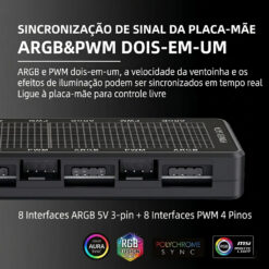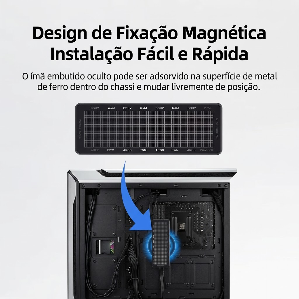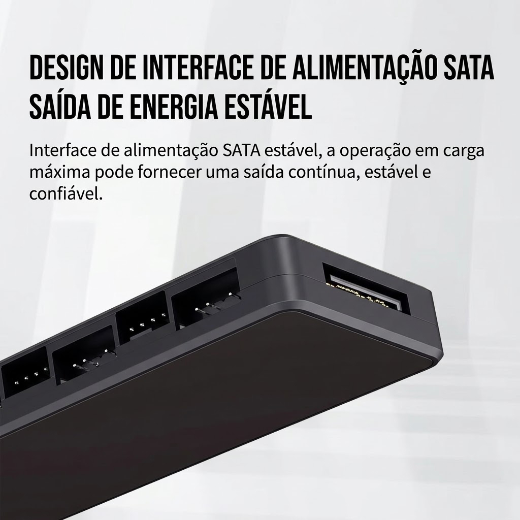 Ideal para gabinetes com várias fans, o hub elimina a necessidade de múltiplos cabos e divisores, além de fornecer energia estável através de conexão SATA, evitando sobrecarga nos conectores da placa-mãe.