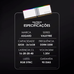 Kit 32GB Memória RAM Asgard V5 Valkyrie – Alta Performance para Gamers e Entusiastas!