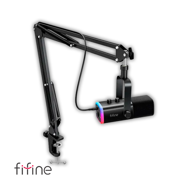 Microfone Dinamico Fifine AM8T Com Suporte Articulado – RGB – XLR – USB